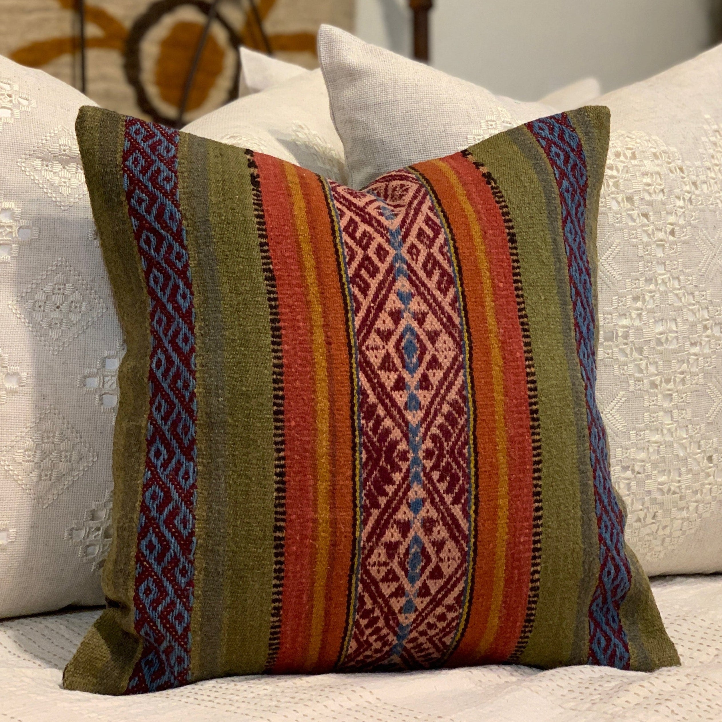 Handwoven Santo Tomas Olive Pillow Peru (16x16)