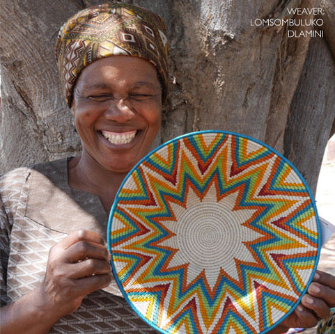 Handwoven fiber basket made with natural sisal from sustainably harvested sources. This is from a small artisan organization that has been working in Eswatini (Swaziland) since 1985. Very sturdy. Beautiful on the table or on the wall. Colors: cream and black.